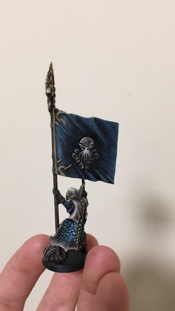 I also have plans for animated ships’ figureheads that descend from the fleet to bring death to the enemy (represented by Morghasts), and a spectral apparition of a sunken ship and the spirits of those who drowned aboard it, who even in death protect its necromantic treasures (to stand in for a Mortis Engine).