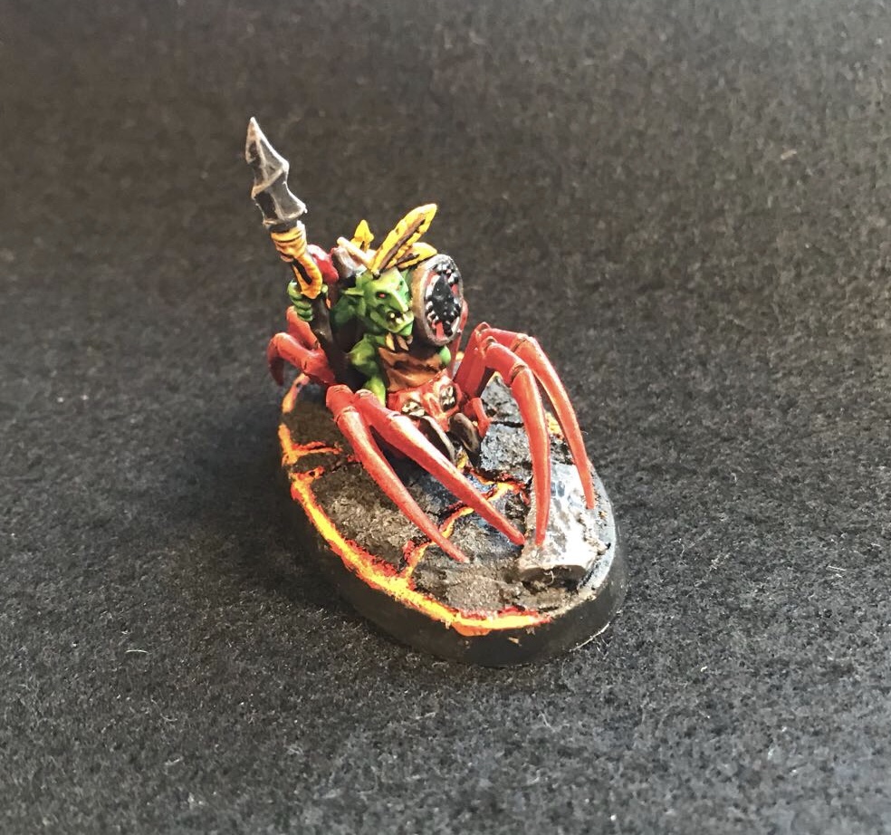 Spawned from a whattsapp chat, a new tale of 4 gamers project, with myself, Chris, Aaron and Matt. What should I take I pondered? As per the norm I wanted something a bit less mainstream. I haven’t really done much in the way of destruction and 1 player from each alliance was the plan. So I had a look through the scrolls, and (following another post Tournament, journey home chat) plumped for spiderfang. I love the Arachnarok model, so straight away I was having 4 of those. Add in a boss on spider and riders and I am nearly done. I wanted to use the ally capability a bit, just to give a bit more variety, so some Gitmob grots and squiggs fill out the planned list.