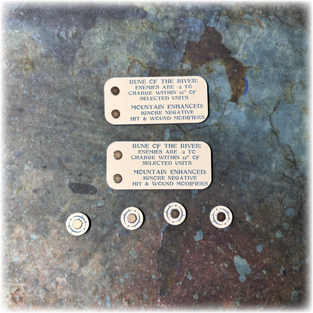 These unique Rune Unit Trackers have been designed to record the buffs your units receive from the Runes mechanic. The magnetic tokens are placed on the relevant spaces on the board to visibly show the positive effects your chosen unit has gained.