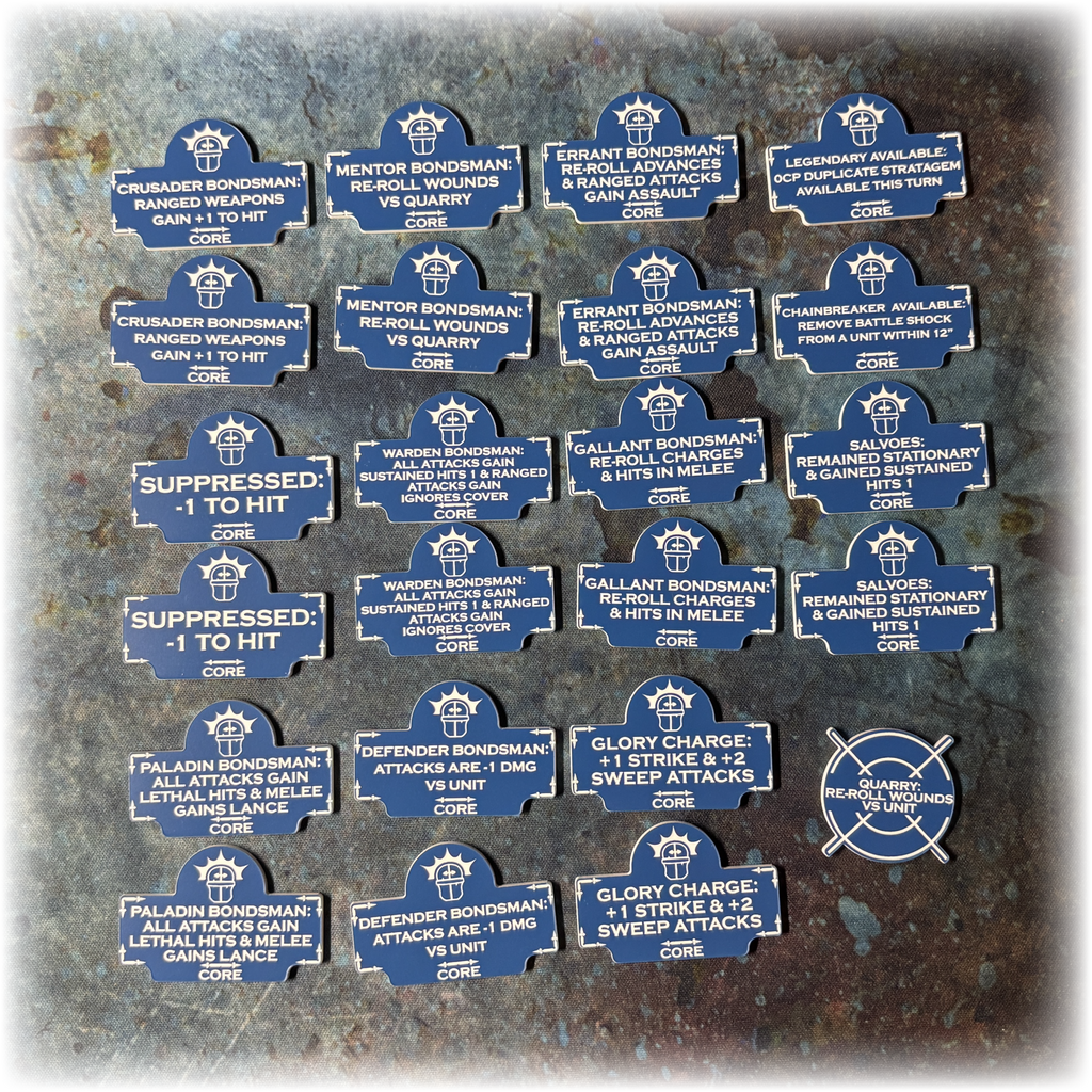 Our Tokens are the perfect solution to keep track of key abilities during your 10th edition games.