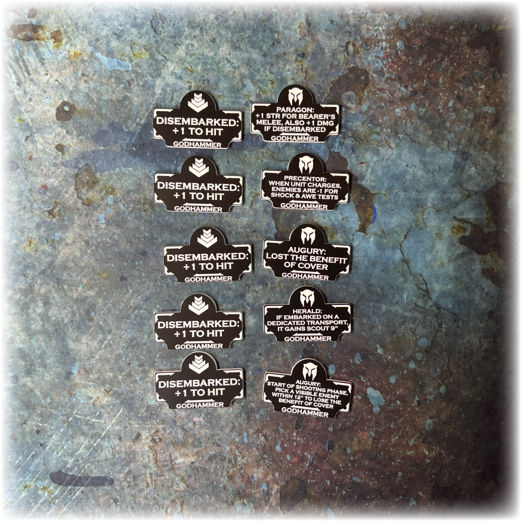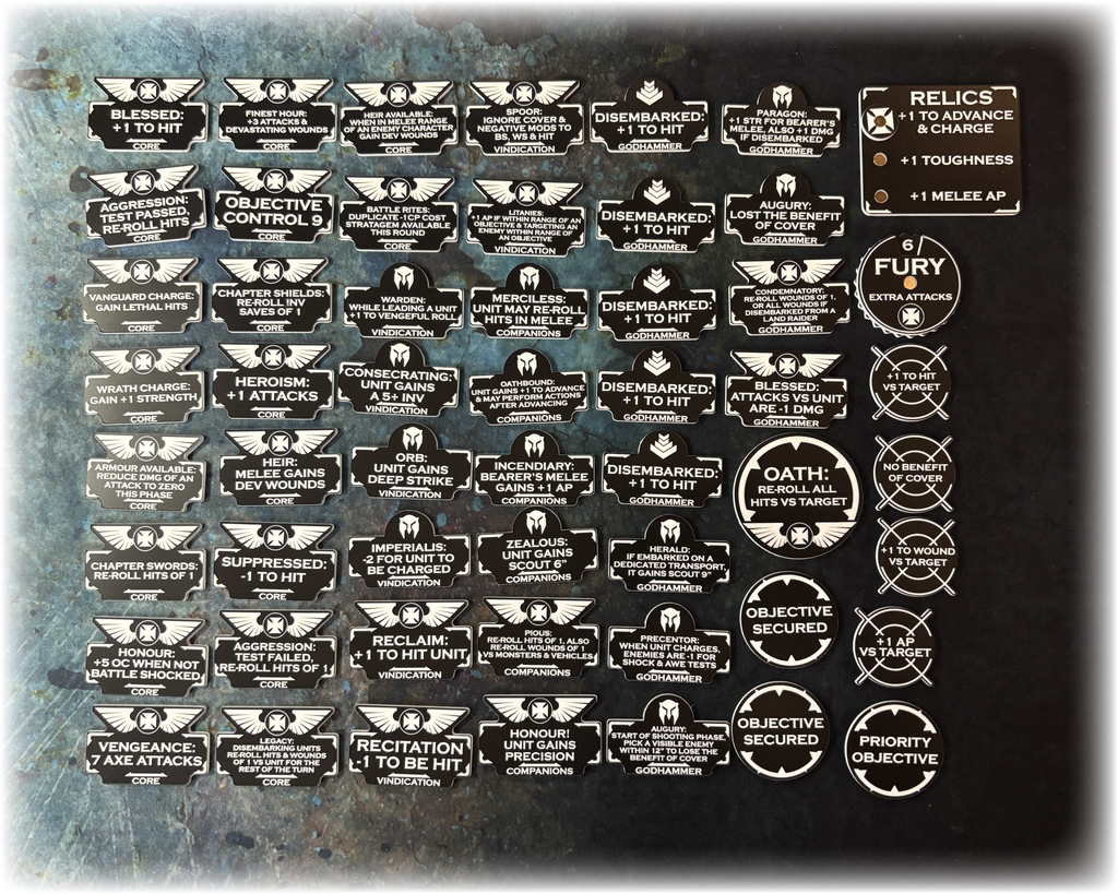 Our Tokens are the perfect solution to keep track of key abilities during your 10th edition games.