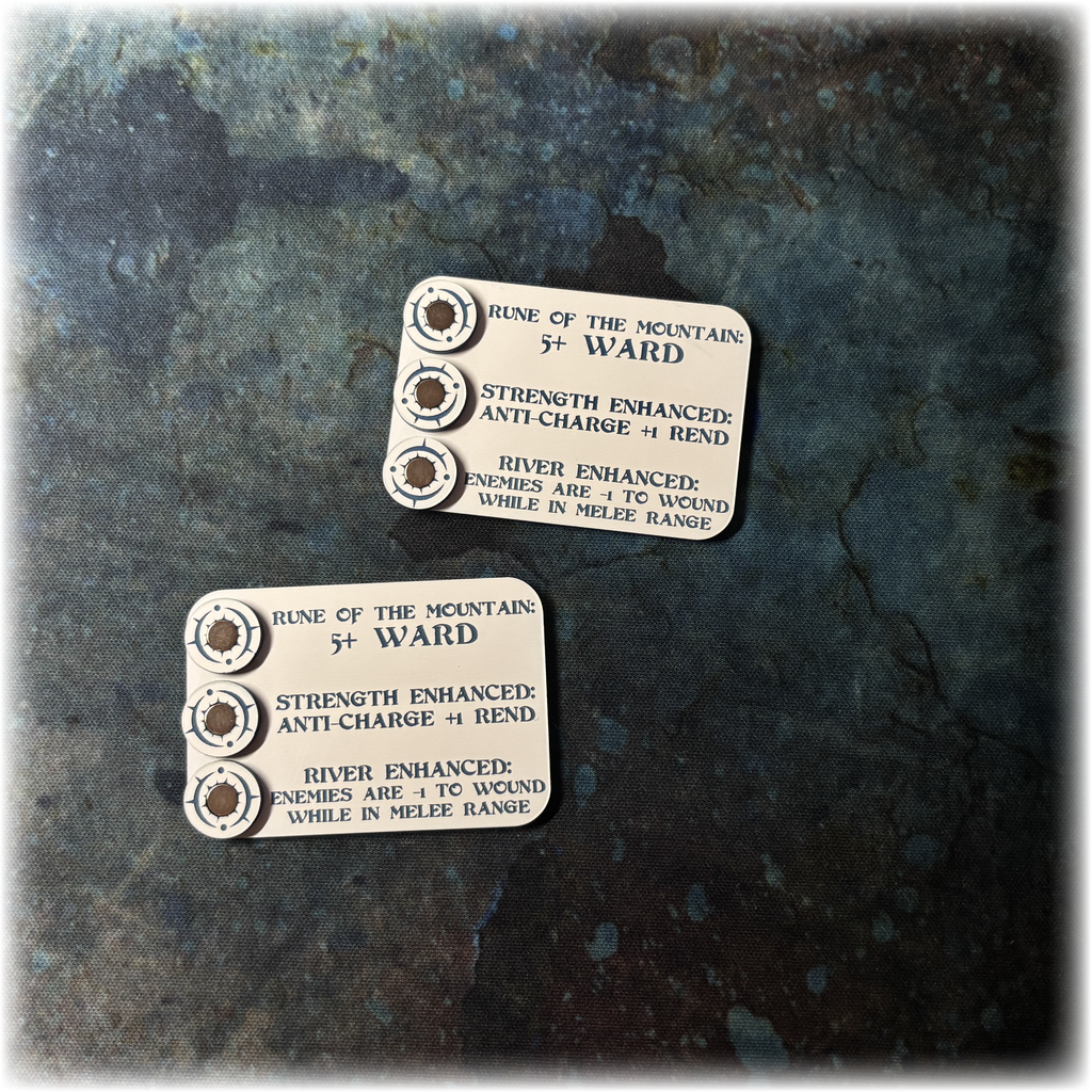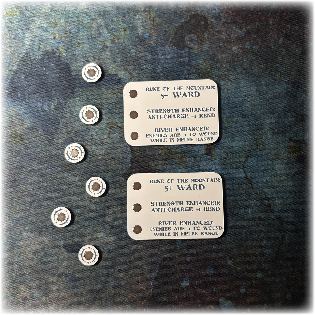 These unique Rune Unit Trackers have been designed to record the buffs your units receive from the Runes mechanic. The magnetic tokens are placed on the relevant spaces on the board to visibly show the positive effects your chosen unit has gained.