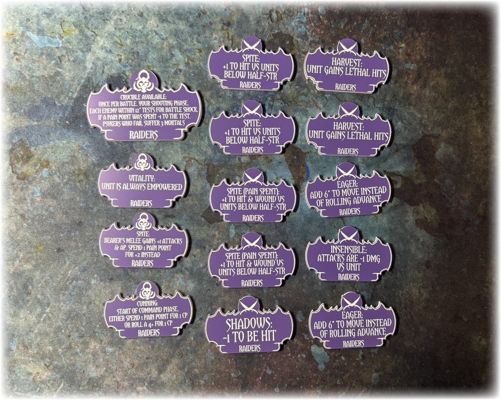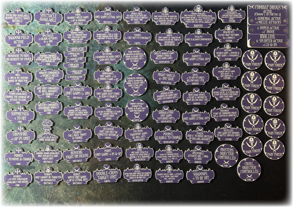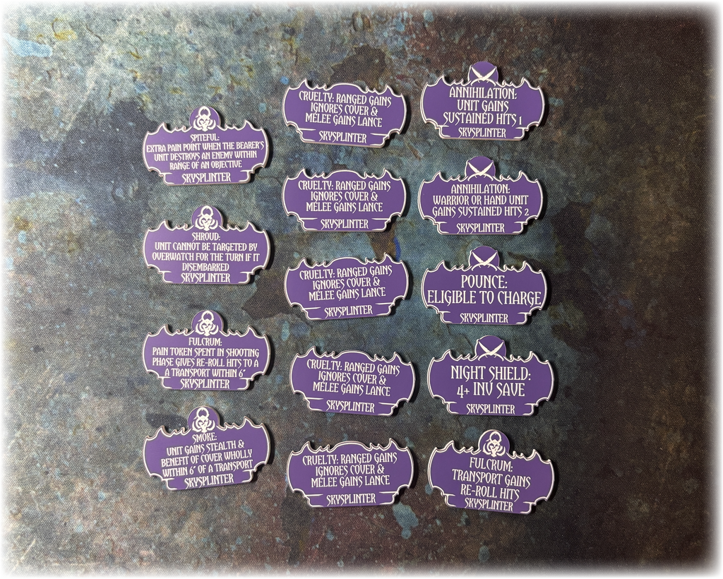Our Tokens are the perfect solution to keep track of key abilities during your 10th edition games. Made from high-quality materials, these tokens are durable and easy to use. Say goodbye to messy pencil marks, confusing notes or dice, and say hello to simpler, more organized gameplay with our Tokens.