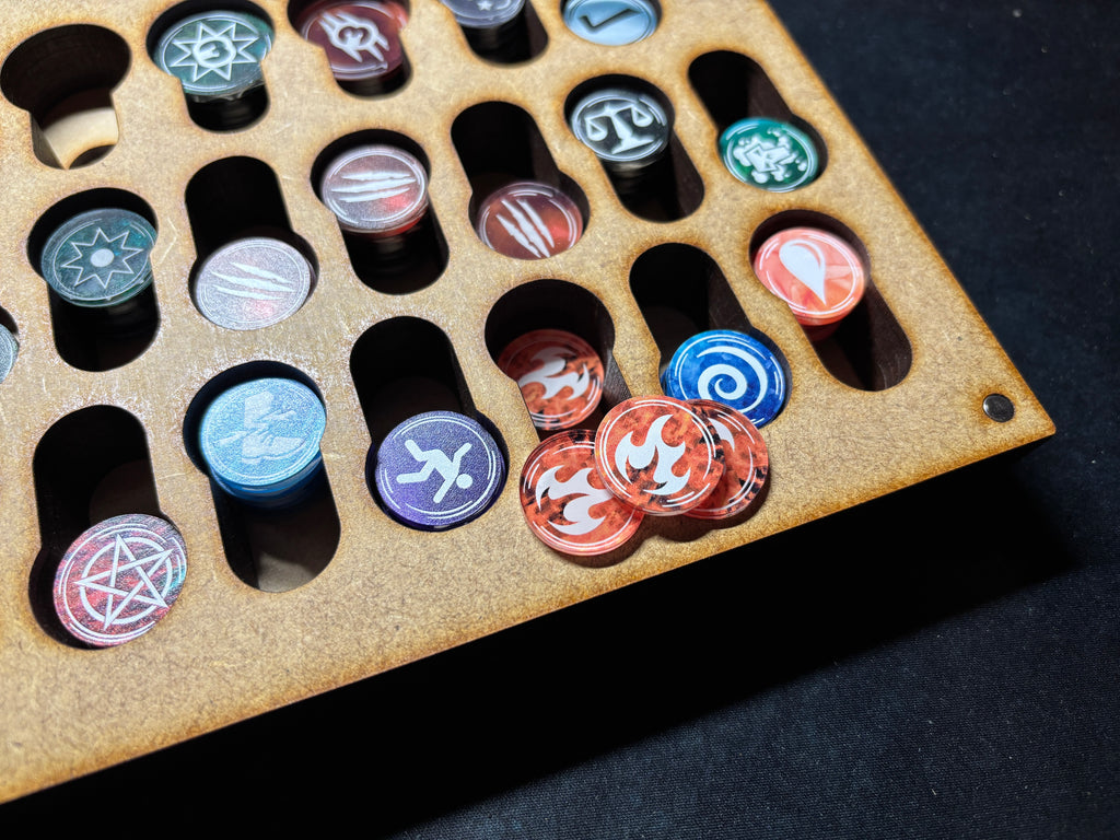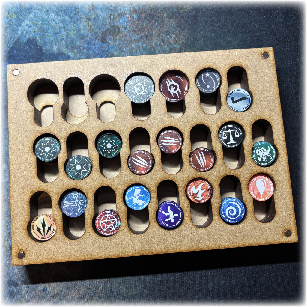Now with an option for a Magnetised MDF Tray to store and transport these tokens & 1 Affiliation set (affiliation tokens purchased separately)! The MDF tray stores tokens in stacks of 6.
