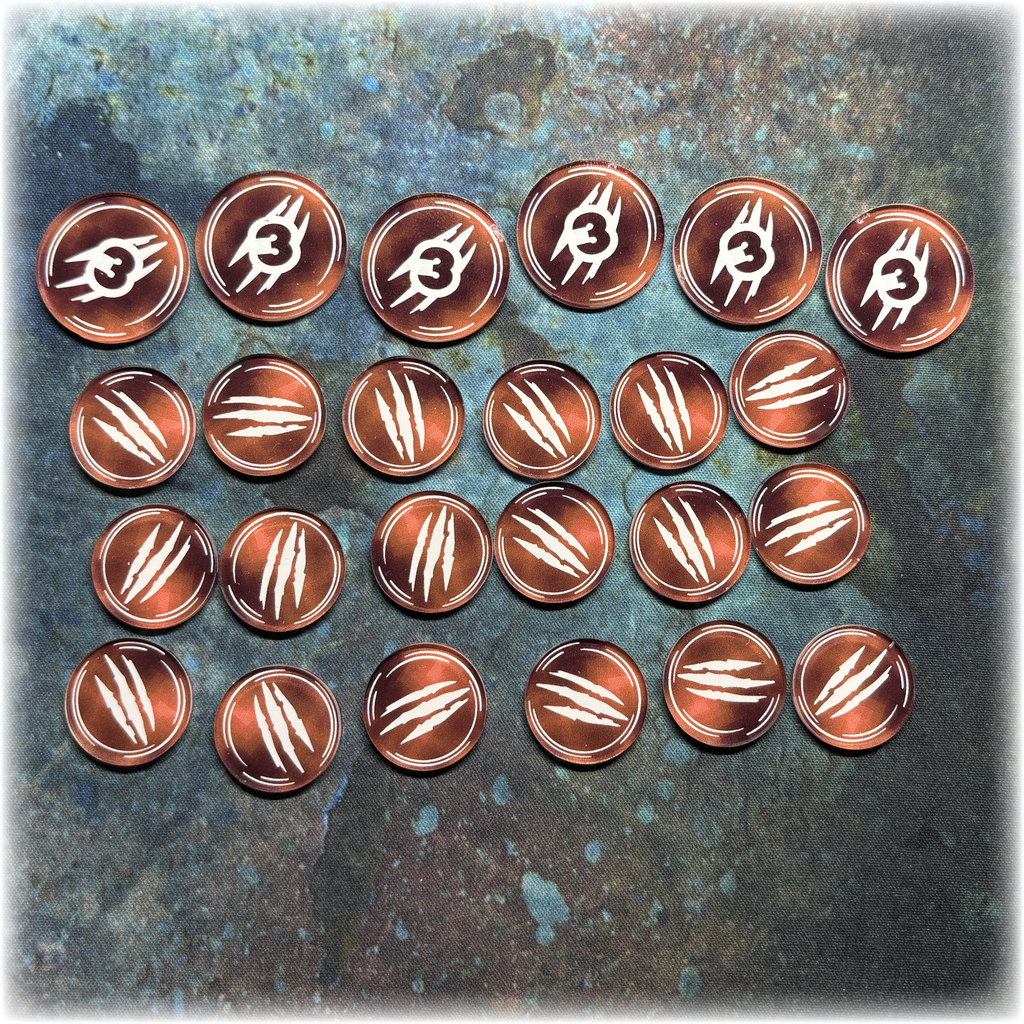This set of Wound tokens has been designed as an upgrade of the cardboard pieces supplied with the popular Superhero Crisis game.
